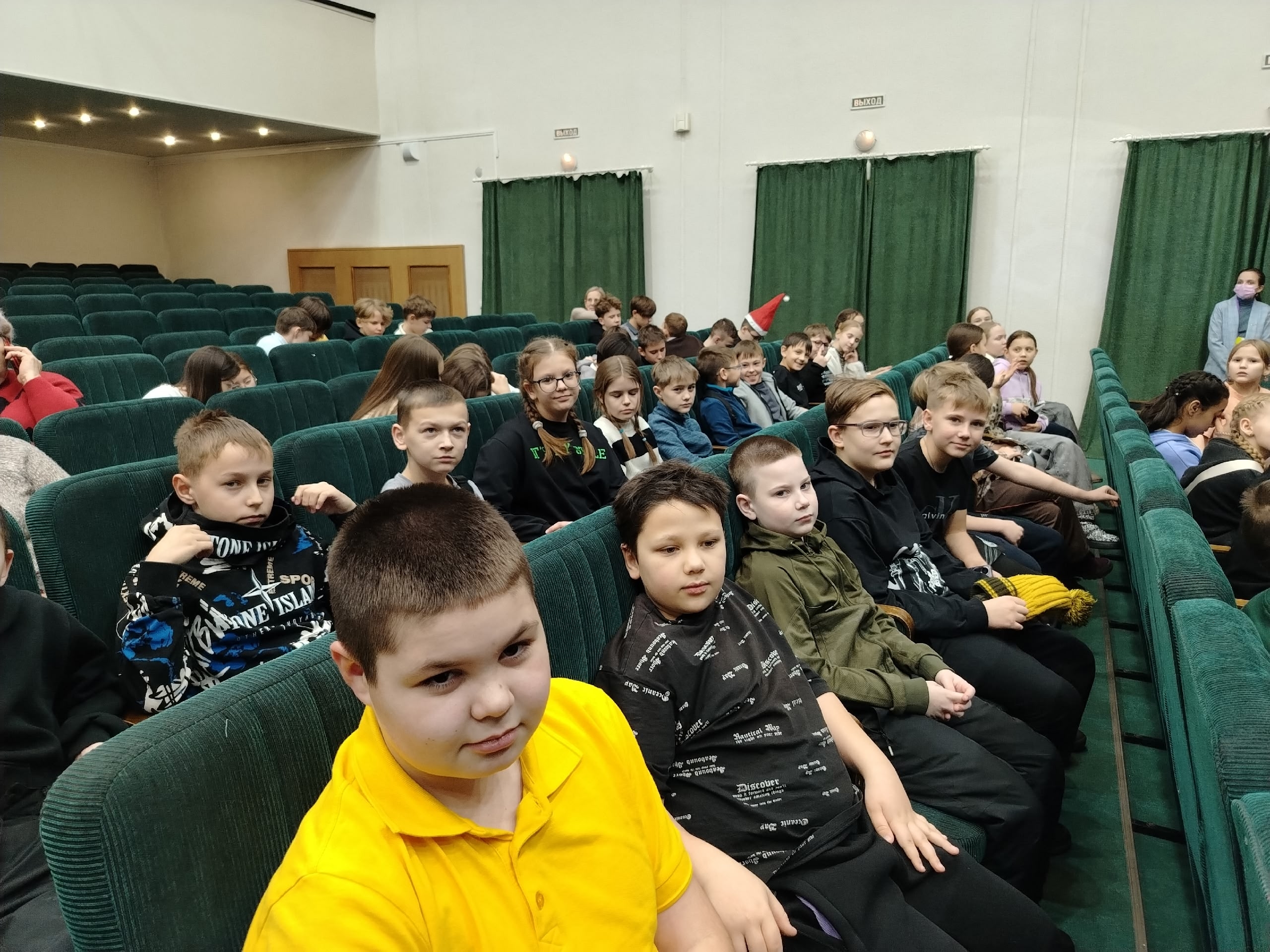Новогоднее представление «Привет из Дедморозовки»Ребята 5а и 5б классов посетили Новогоднее представление «Привет из Дедморозовки». Далеко на севере находится невидимая деревня Дедморозовка — место, где происходят новогодние чудеса. Там живет Дед Мороз со Снегурочкой и их помощники — веселые снеговики и снеговички.