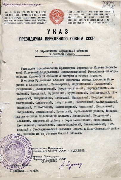 Каждый год в начале февраля наша область празднует свой день рождения. В 2020 году ей исполняется 77 лет. Указ Президиума Верховного Совета СССР «Об образовании Курганской области» был подписан 6 февраля 1943 года. В состав вновь образованной области были включены 32 района, выделенные из состава Челябинской области, а также 4 района и 8 сельских Советов, переданные из состава Омской области. Территория области составила 72 тысячи квадратных километров, население 872 тысячи человек. На территории области находилось 478 различных промышленных предприятий, 1973 колхоза, 101 МТС и 37 совхозов. Не стоит забывать, что рождение Курганской области пришлось на трагические для нашей страны годы Великой Отечественной войны. Курганская земля внесла весомый вклад в дело Великой Победы - более 200 тысяч человек наших земляков сражались на фронтах войны. Кроме того, в эти годы на территории Зауралья разместились и начали работать 22 эвакуированных предприятия. Вместе с ними прибыло около 150 тысяч человек эвакуированного гражданского населения. В 1941-1944 гг. зауральские колхозники, рабочие совхозов и МТС дали стране 1 млн. тонн зерна, 131 тыс. тонн картофеля, 57 тыс. тонн мяса, 214 тыс. тонн молока, более 26 млн. штук яиц, миллион штук кожевенного сырья, 2 тыс. тонн шерсти. Экономический потенциал края в годы войны значительно вырос. У Курганской области богатая история. В каждой сфере, будь то промышленность, сельское хозяйство, наука или искусство, есть у курганской земли славные достижения и яркие страницы. Мероприятия в городе. Смотреть. |