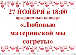27 ноября 2025 года в 18:00 в актовом зале РЖД лицея № 5 состоится праздничный концерт "Любовью материнской мы согреты" для всех мам!