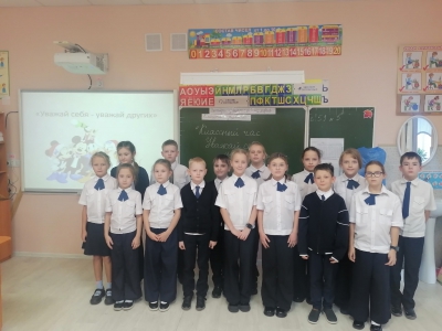 14 ноября в 3 классе прошел классный час на тему «Уважай себя, уважай других». Мероприятие состоялось в форме беседы, где ребята узнали, от чего зависит уважение к себе и окружающим. Также учащиеся прочитали определение слова «уважение» из толкового словаря Ожегова. В ходе занятия ребята посмотрели мультфильм «Как ослик Алфавит учился уважать старших», что помогло лучше понять значение уважения. Провели физминутку по правилам уважительного общения и поиграли в игру «Человек с планеты Земля».
