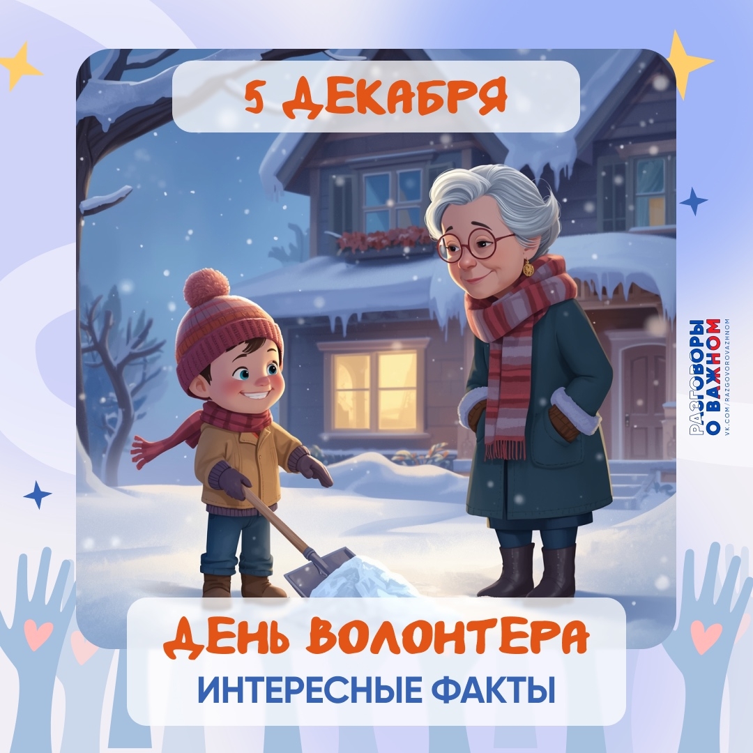 День добровольца (волонтёра) в России отмечается 5 декабря. Дата была установлена указом Президента РФ от 27 ноября 2017 года. Праздник нацелен на привлечение внимания общественности к волонтёрству — безвозмездной помощи на благо общества.