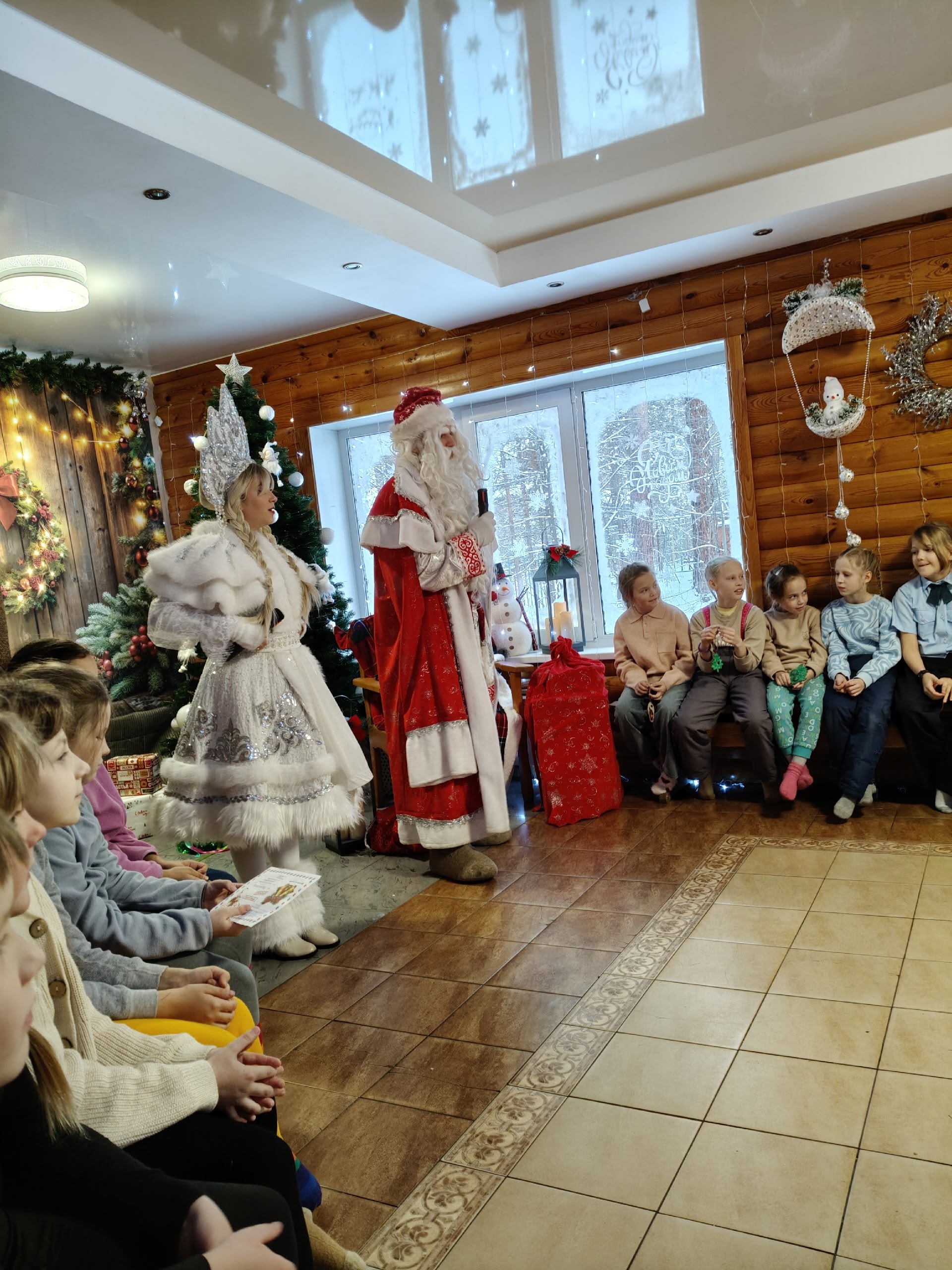 Вчера ученики 2 и 3 классов побывали в волшебной деревне Деда Мороза. Сначала дети попали в гости к прекрасной Бабе Яге, которая показывала удивительные волшебные трюки и заряжала нас своей магической энергией. Это было настоящее волшебство! Затем мы отправились в домик Деда Мороза, где зажгли праздничную ёлку и поиграли в разные игры. В воздухе царила радость, веселые хороводы закружили всех вокруг, создавая праздничное настроение. После активных развлечений нас угостили пиццей – было очень вкусно!