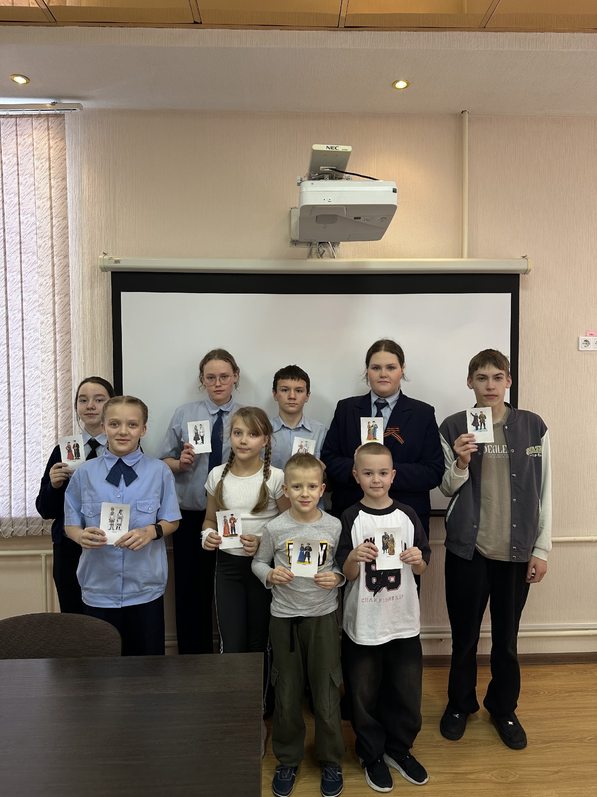 Провели жеребьевку среди командиров класса для того, чтобы начать подготовку к Фестивалю национальных культур «Многоликая Россия» в рамках празднования Года Единства Народов России, где ребята представят и познакомят всех участников с традициями, обрядами, играми, костюмами народностей которые населяют территорию Российской Федерации.