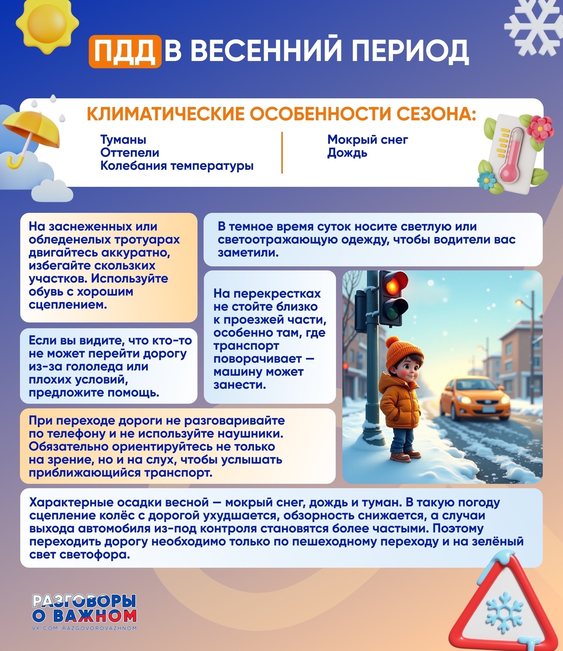 С наступлением весны меняются не только погодные условия, но и особенности дорожной обстановки. Чтобы оставаться в безопасности на дорогах, важно соблюдать несколько необходимых правил |
