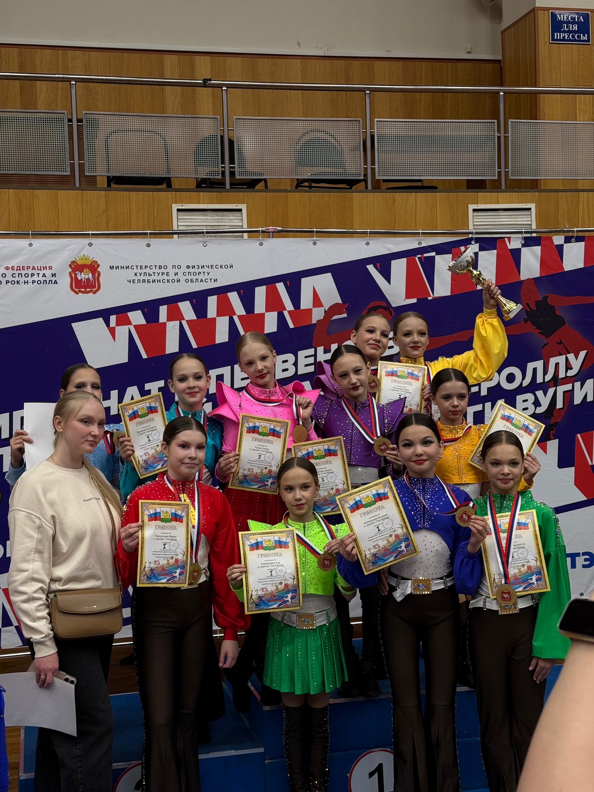 СПОРТИВНЫЕ НОВОСТИ 9 марта состоялось Первенство Челябинской области по акробатическому рок-н-роллу. Наши девочки, ученица 4 класса Семенова Таисия и ученица 5 А класса Кузнецова Евгения со своей командой Twinkling заняли почетное 1 место, они стали лучшими в своей категории формейшн девушки. ПОЗДРАВЛЯЕМ |