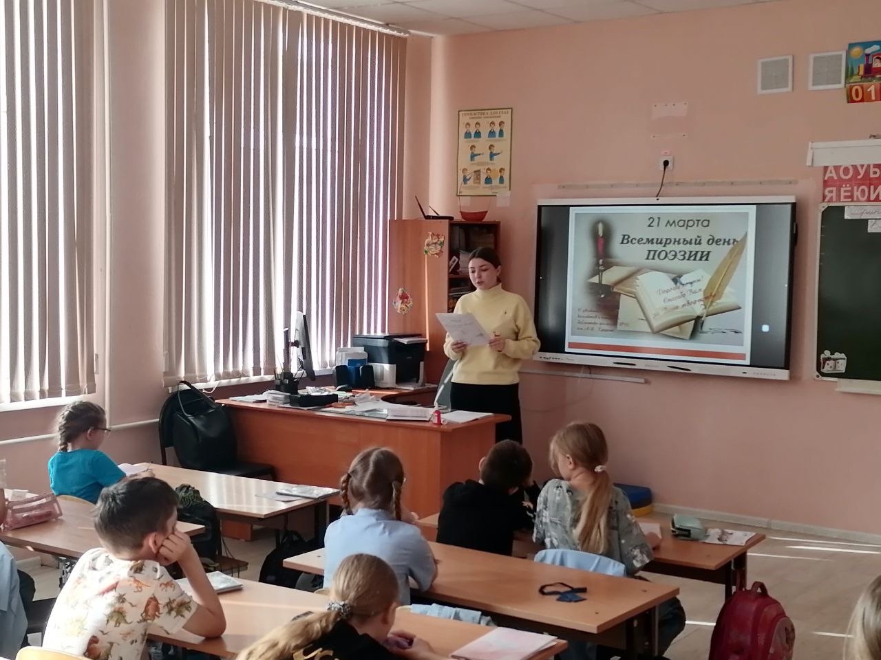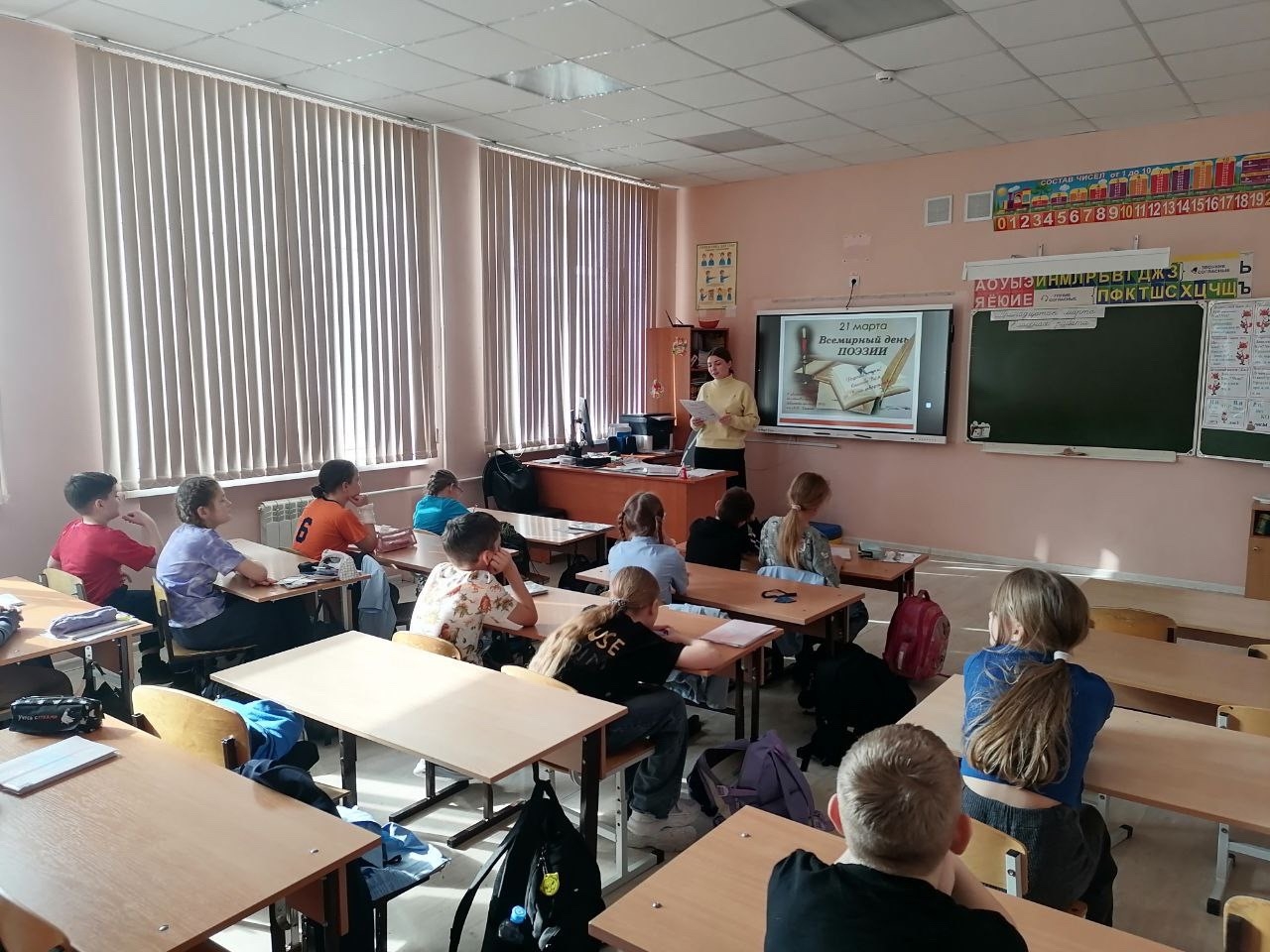 Ребята вспомнили о великих поэтах — Александре Сергеевиче Пушкине, Сергее Есенине, Александре Блоке и Фёдоре Тютчеве — и обсуждали их стихотворения: о чём они, какие чувства вызывают, какие образы и звуки помогли автору передать настроение. На уроке говорили также о том, почему стихи называют красивыми и музыкальными: из‑за ритма, рифмы, звуковых повторов и образных сравнений, которые делают строки мелодичными. Юлия Сергеевна побудила детей читать стихи и отмечать понравившиеся строки.