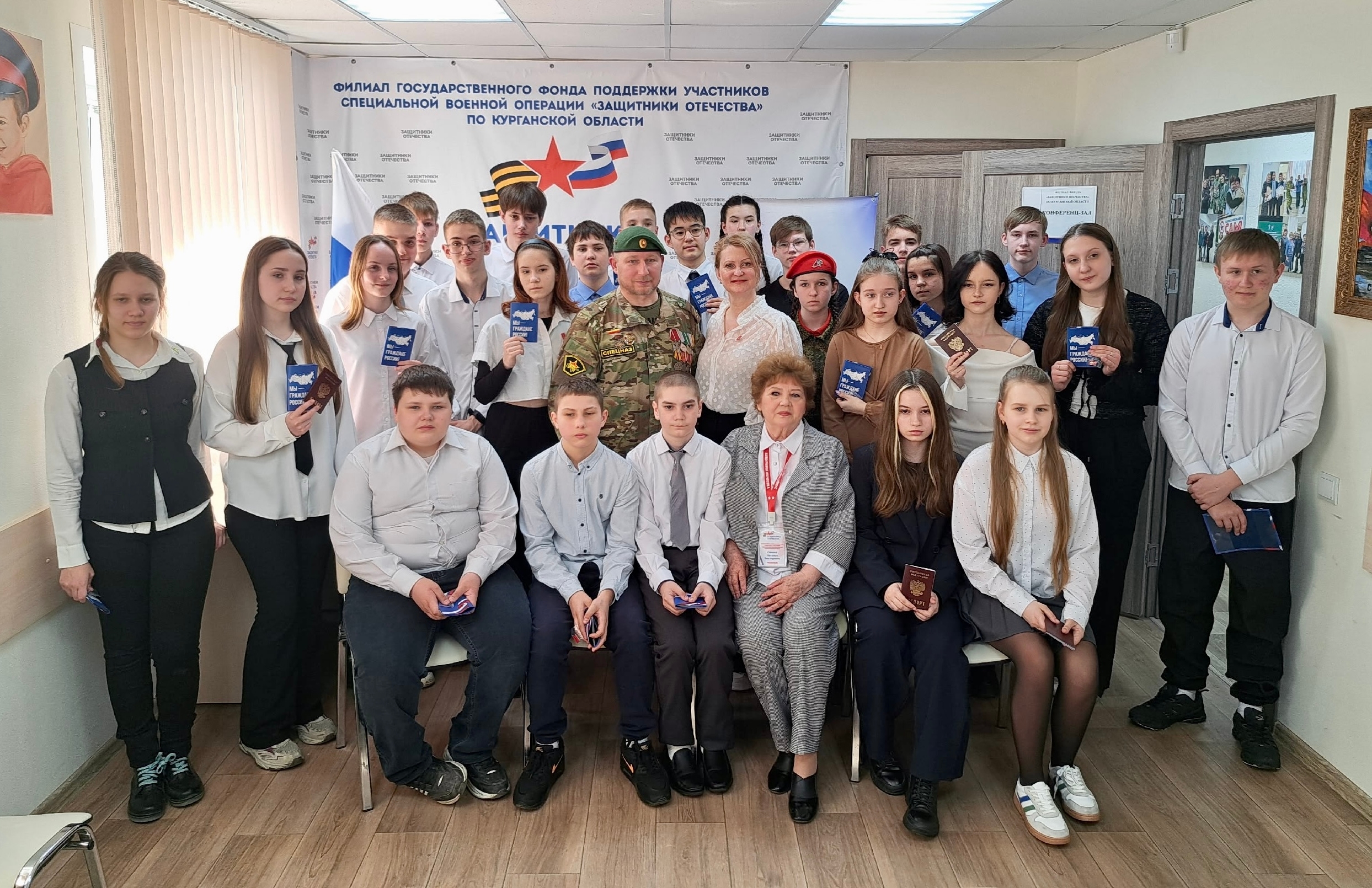 В региональном филиале фонда «Защитники Отечества» прошла церемония вручения паспортов участникам Движения Первых в рамках Всероссийской программы «Мы — граждане России!». Поздравляем обучающихся Андрея С, Мейрама Б., Екатерину К. с получением паспортов в торжественной обстановке в рамках Всероссийского проекта "Мы - граждане России"! Юные жители региона получили свой главный документ — символ ответственности, новых прав и возможностей. Вместе с паспортами ребятам вручили памятные подарки от Движения Первых.