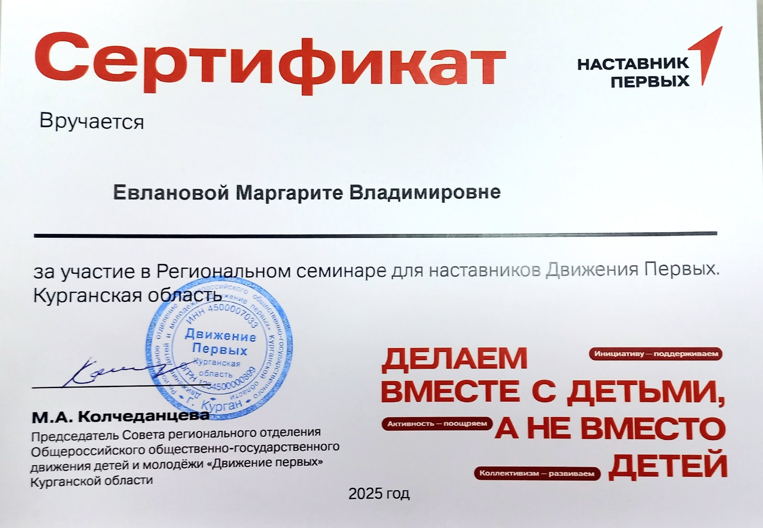 27 октября в Курганской области прошёл региональный семинар наставников Движения Первых — пространство, где встречаются единомышленники, опыт и вдохновение. От первичного отделения нашего лицея в семинаре приняла участие педагог-организатор Евланова Маргарита Владимировна. Одним из ярких моментов программы стало пленарное заседание, которое стало площадкой для открытого обмена мнениями о роли наставника в современном обществе, о том, как поддерживать детские инициативы и развиваться вместе со своими подопечными.